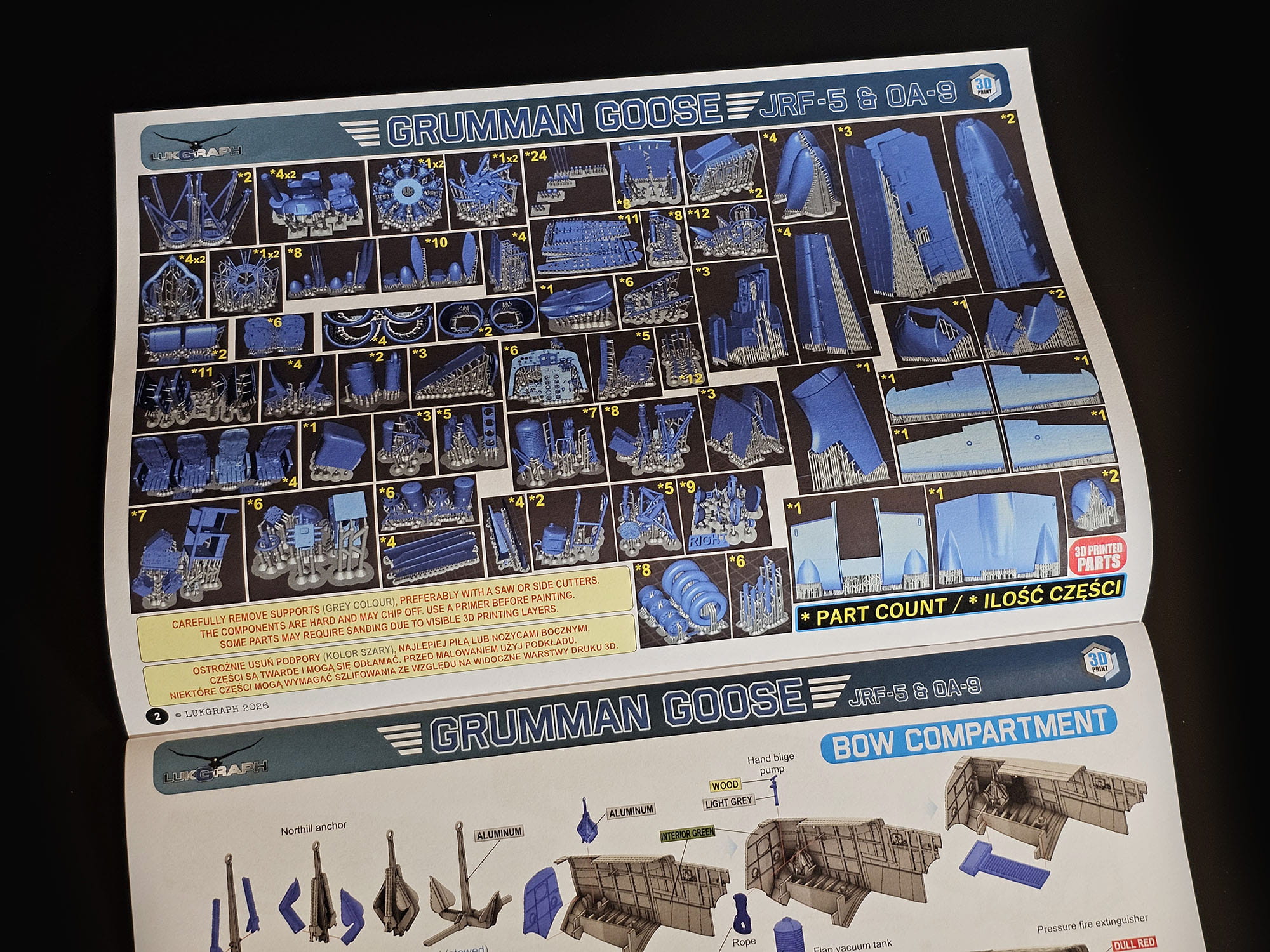 This kit is made for creative builds. You can reduce the model’s footprint by removing the wings, presenting your Goose as if it’s undergoing overhaul or restoration—perfect for dynamic dioramas and workshop displays. Configure the aircraft further with landing gear options, allowing you to model it either extended for ramp scenes or retracted for an in-flight or water-operation appearance.